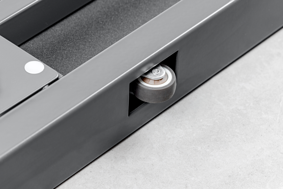 • Weegschaal kan met twee wielen en een greep gemakkelijk worden verplaatst en plaatsbesparend worden opgeborgen
