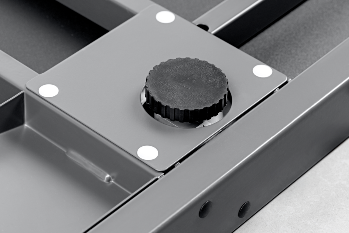 • Veilige en tegen wegglijden beveiligde opstelling door in hoogte verstelbare rubberen pootjes
